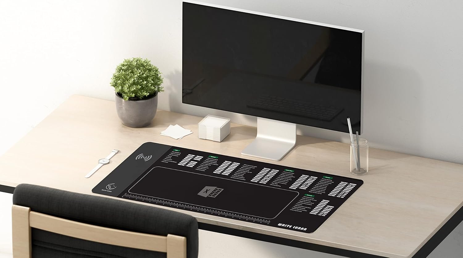 Why it’s a game-changer: It’s not just a mouse pad, it’s a multitasking power house. It’s a 15W wireless charger, plus a real size ruler, and Excel shortcuts right on the surface. Ideal for Excel wizards or for anyone who wants to speed up their workflow.